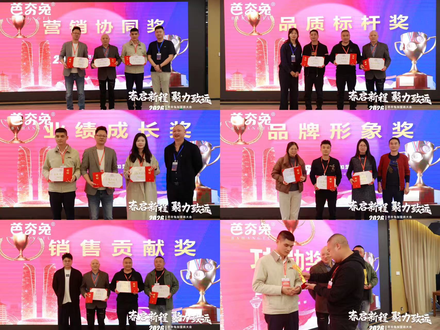 大会尾声,芭夯兔对业绩优异的加盟商进行隆重表彰,特别增设“功勋奖”,颁发给合作15年以上的资深加盟商代表,感恩他们与品牌风雨同舟、不离不弃的坚定陪伴与鼎力支持。